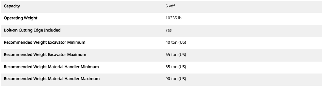 Product Specifications for CTV40-3800-BOCE Clamshell Grapple
