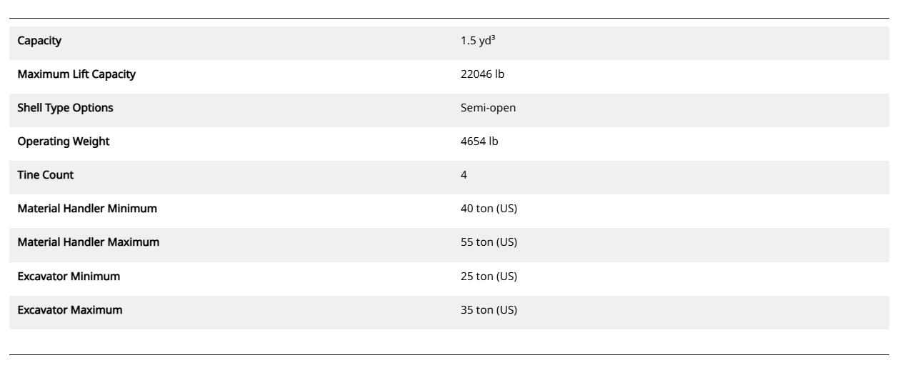Product Specifications for GSH440 4-Tine, 1150-Liter Orange Peel Grapple