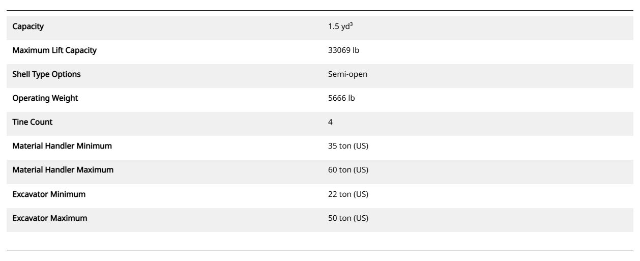 Product Specifications for GSH455 4-Tine, 1000-Liter Orange Peel Grapple