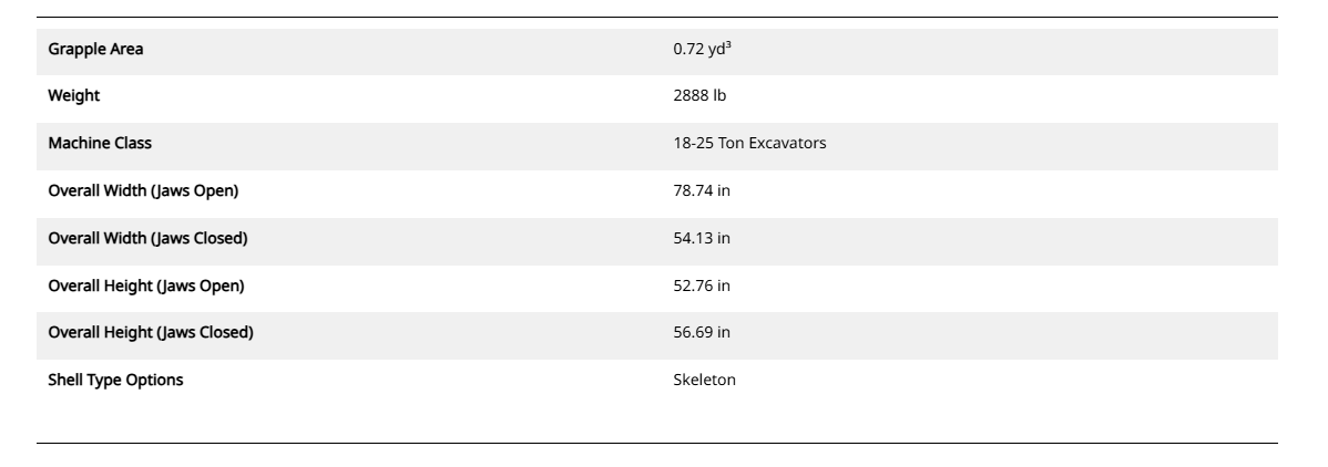 Product Specifications for G318 Demolition & Sorting Grapple: 587-8965