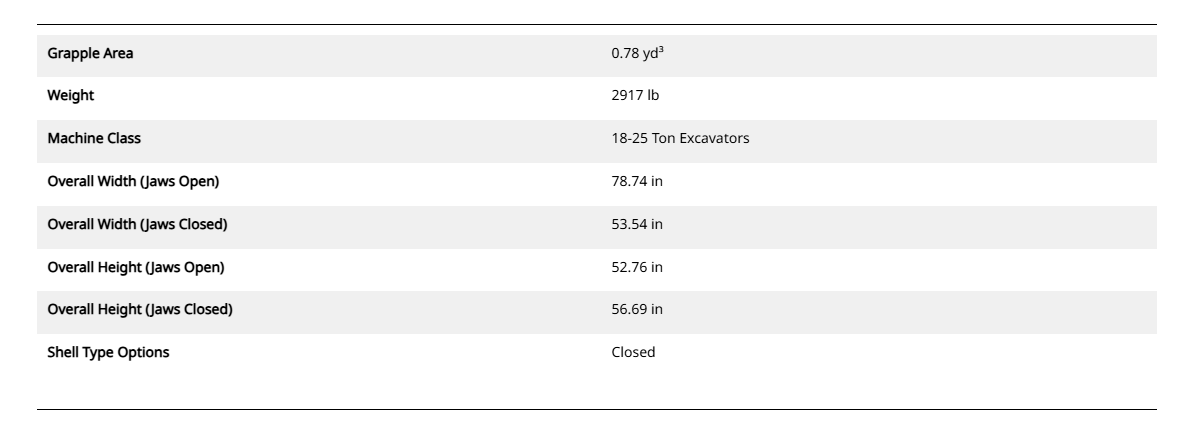 Product Specifications for G318 Demolition & Sorting Grapple: 595-1393