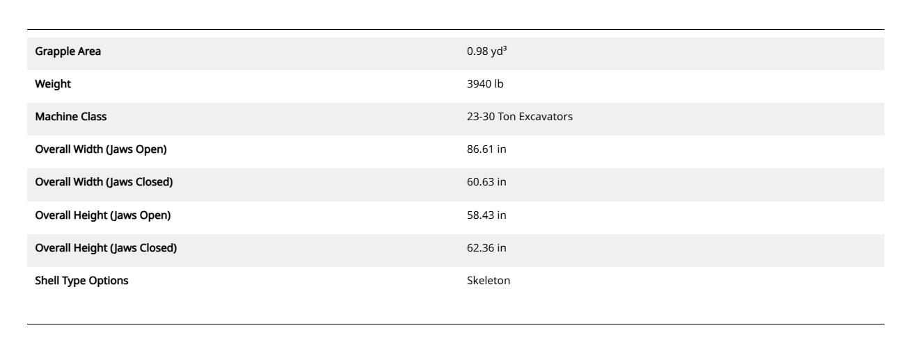 Product Specifications for G324 Demolition & Sorting Grapple: 587-8977