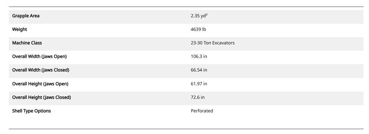 Product Specifications for G324 WH Demolition & Sorting Grapple: 587-8986